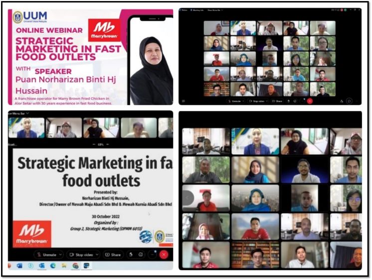 The owner of Mewah Maju Abadi Sdn Bhd and Mewah Kurnia Abadi Sdn Bhd as well as the franchisee operator for Marrybrown Fried Chicken, Mdm. Norharizan Hussain, recently gave a talk via Webex to 40 MBA students enrolled in OPMM 6013 Strategic Marketing about her 30 years of experience working in the fast-food industry.